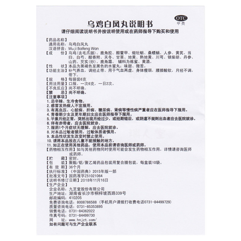 九芝堂 Wuji Baifeng таблетки 10 мешков для пополнения ци и кормить кровь и корректировку менструации нерегулярной менструации