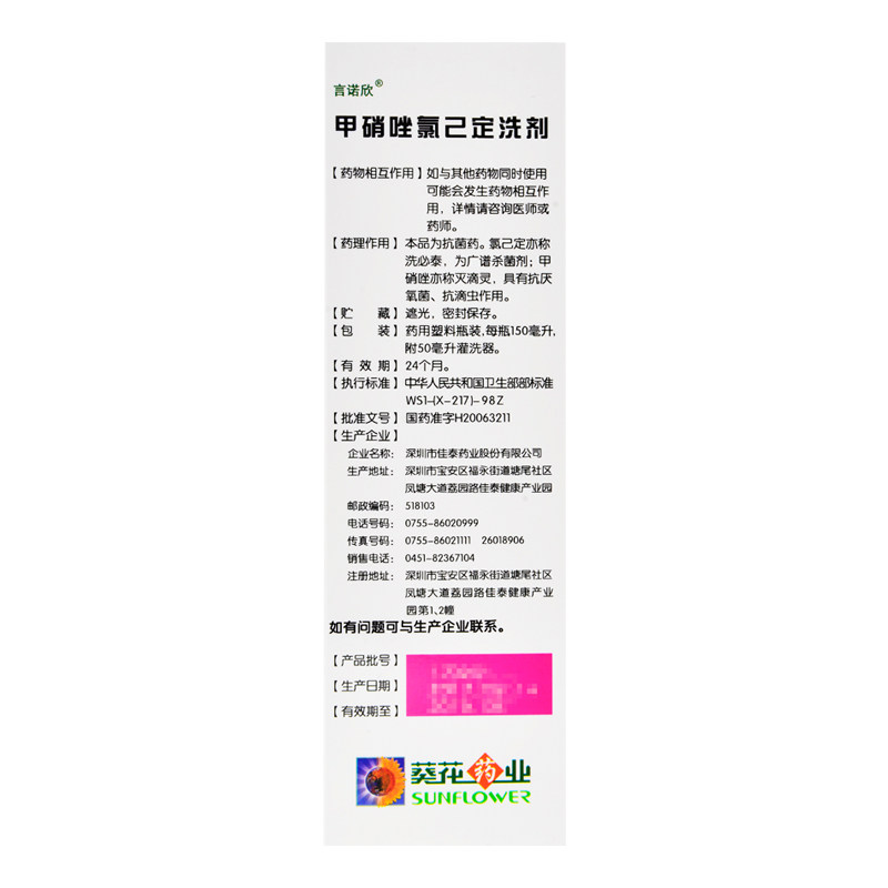 葵花 Янноксин Метронидазол Хлоргексидин лосьон 150мл