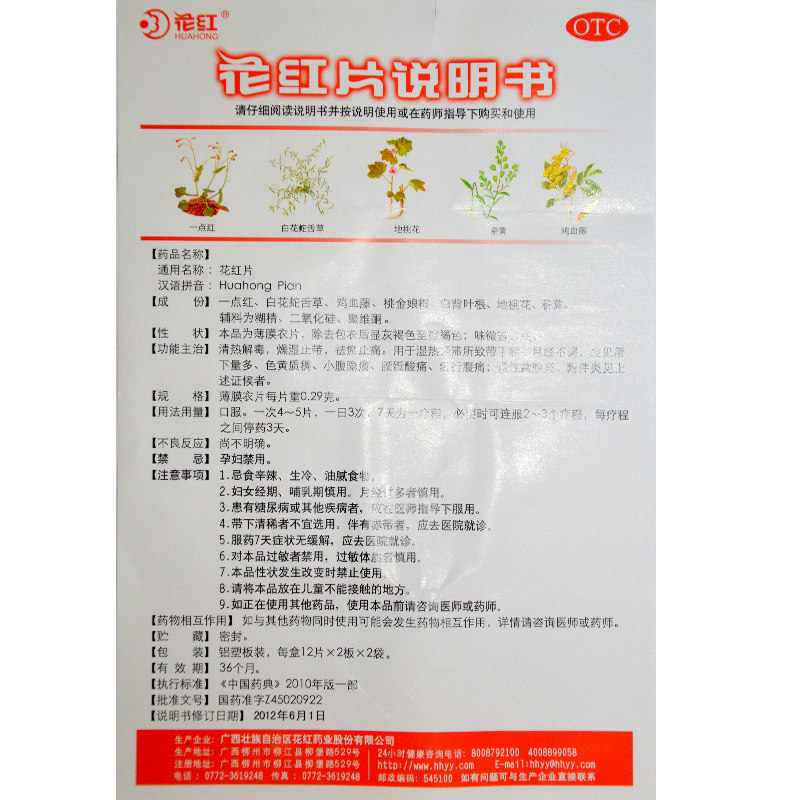 花红 Цветочная красная пленка 0,29 г*48 таблетки/коробка OBW