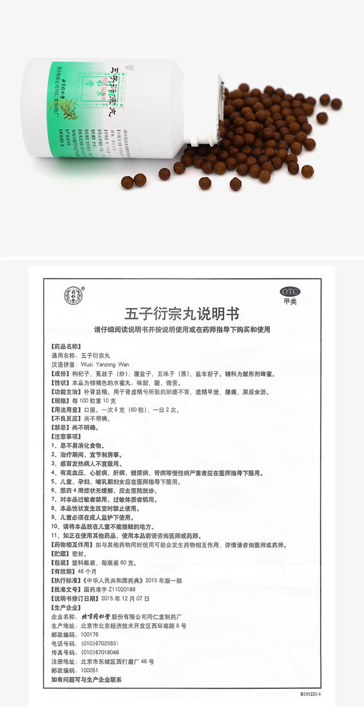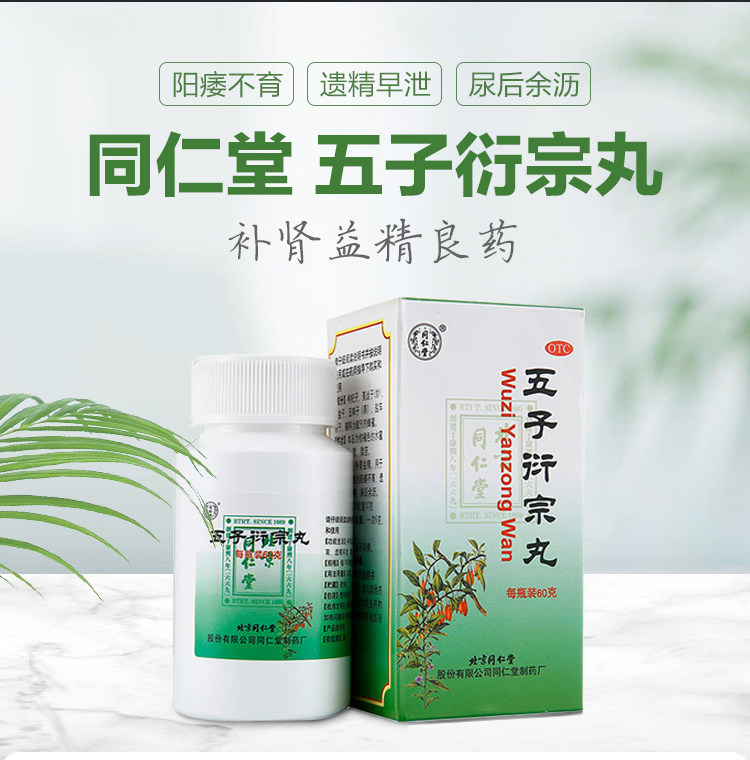 同仁堂 Wuzi Yanzong Pills 60G Беспотентное лечение бессилия почек для дефицита почек и ночной эмиссии, преждевременная боль и моча поясничного