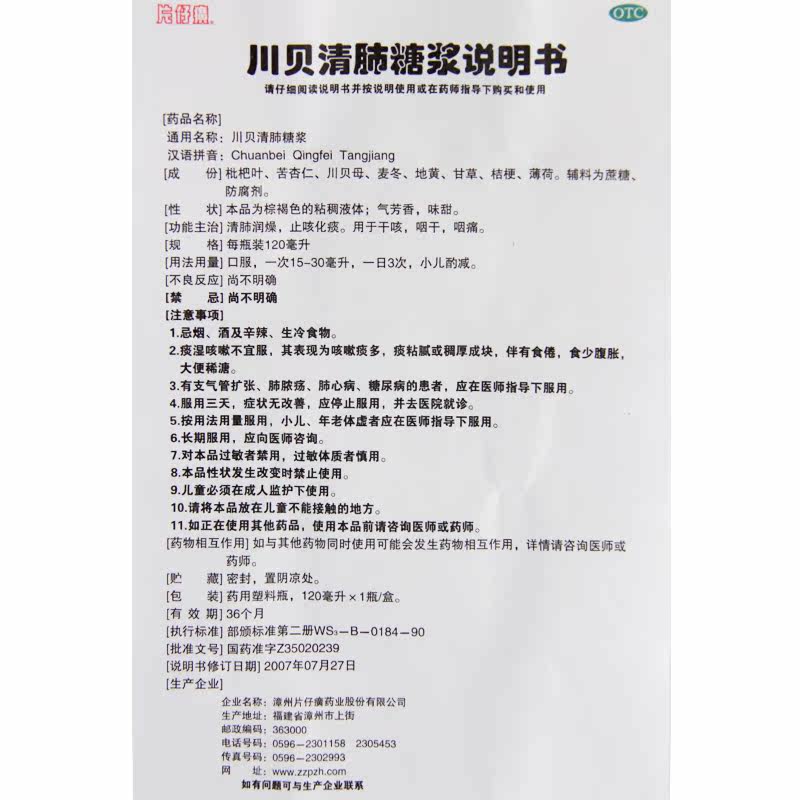 Сироп Pien Tze Huang Chuanbei Qingfei 120 мл очищает легкие, увлажняет сухость, облегчает кашель и уменьшает мокроту, при сухости в горле, боли в горле и сухом кашле F