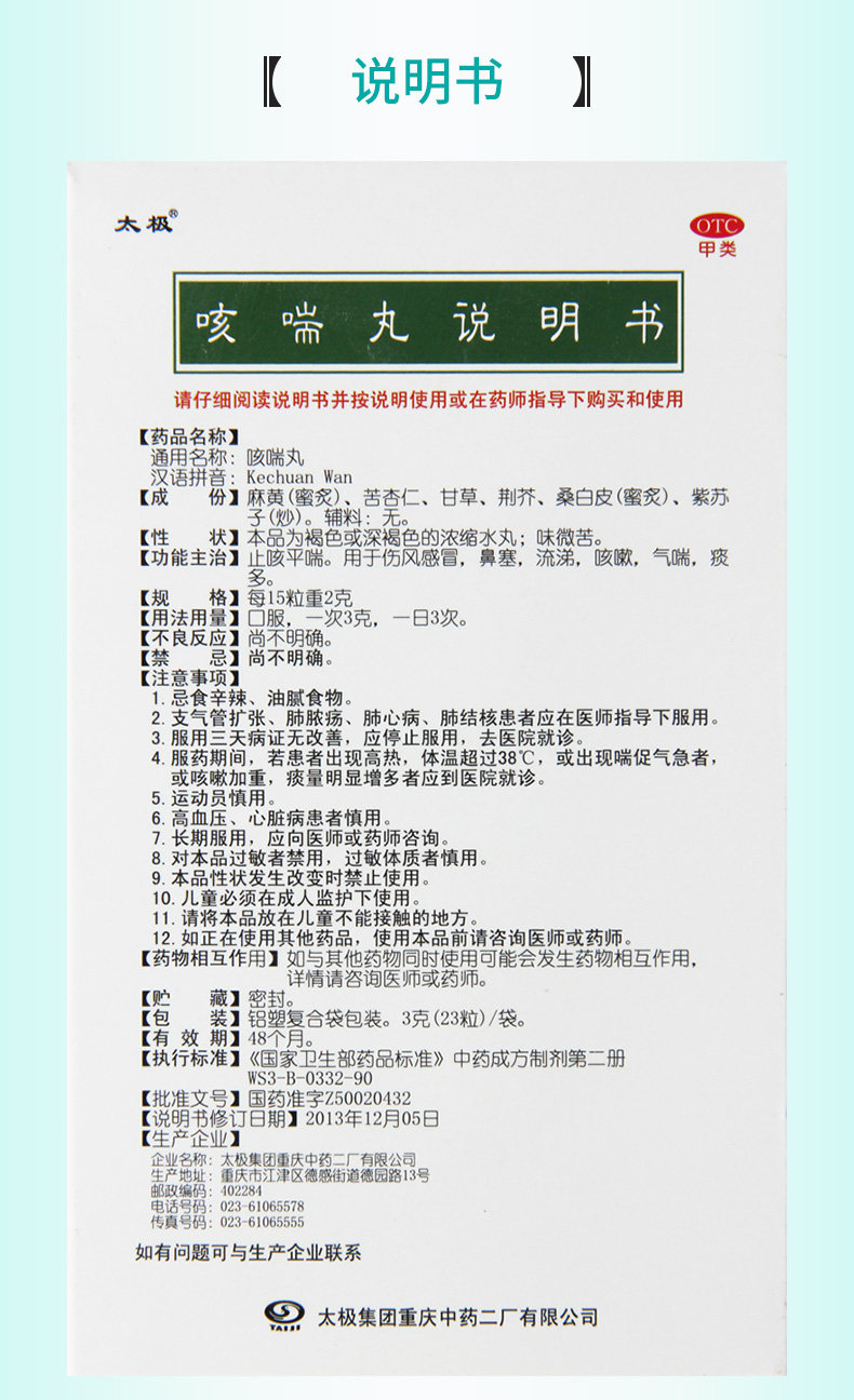 太极 Кашель астма 3G*12 мешков от кашля и астмы используются для холода, холодный, носовой штук, насморк, бесплатная доставка