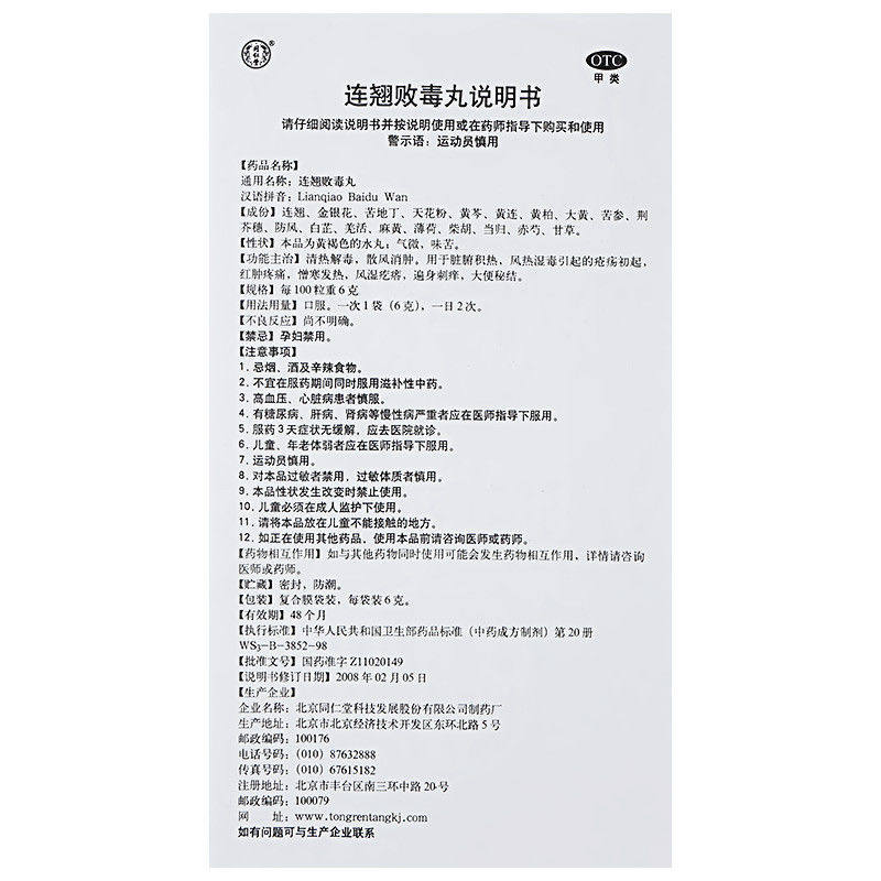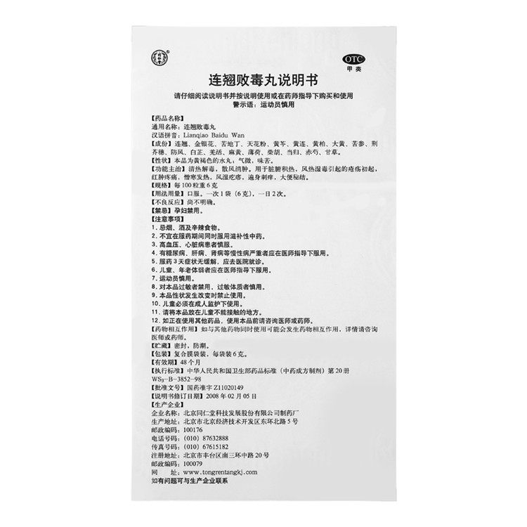 Пекин Tongrentang Forsythia Baidu Таблетки для детоксикации Крылья Dabaidu Китайская медицина Негранулированный порошок Tianqi Внутренняя Монголия Jingxin Film