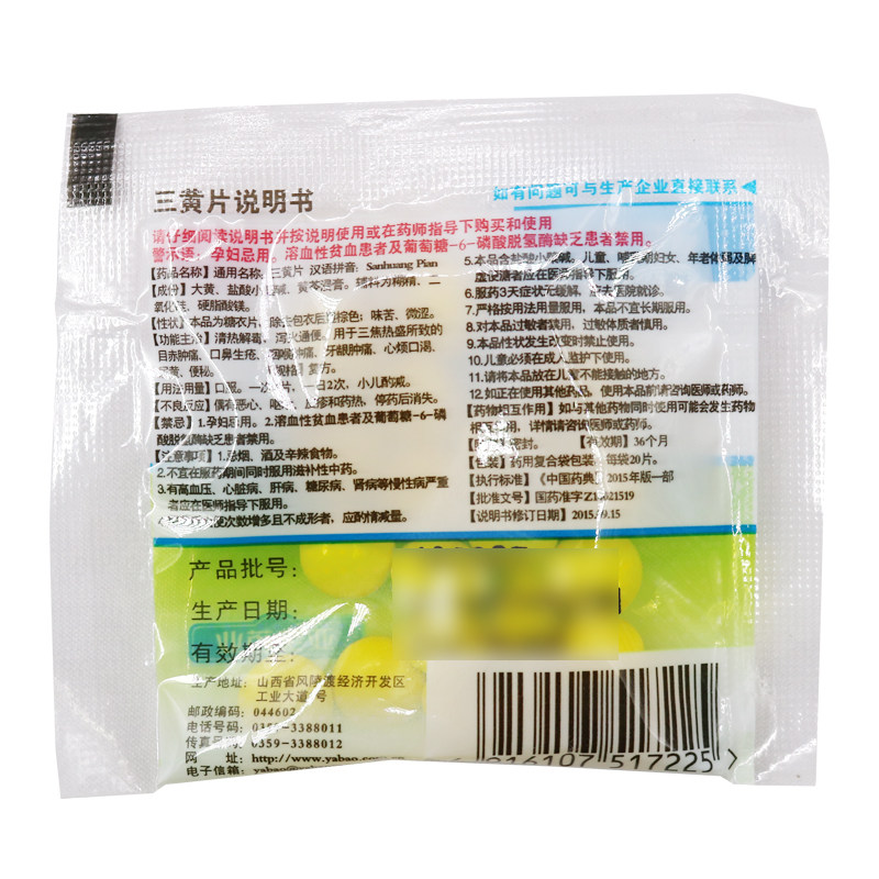 亚宝 Три желтые таблетки 20 таблетки от запора очищают тепло и детоксифицирующий тонсиллит.
