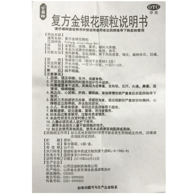 宗药师 Сложные жимолочные гранулы 10 г*6 мешков/коробки ветрового ветря
