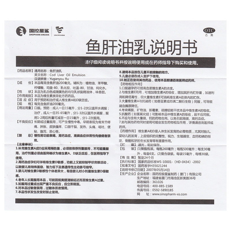 星鲨 Масло печени для трески 500 мл/профилактика бутылок лечение дефицита витамина взрослых витаминов