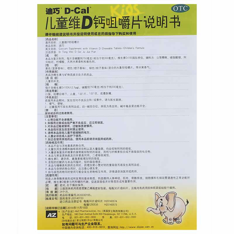 D-Cal/迪巧 Детский DD Calcium Chew Tablet 30 Таблетки*1 бутылка/коробка KJ