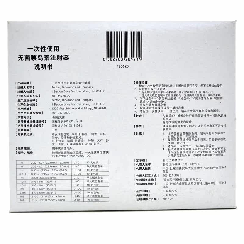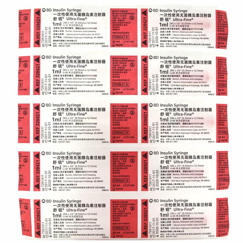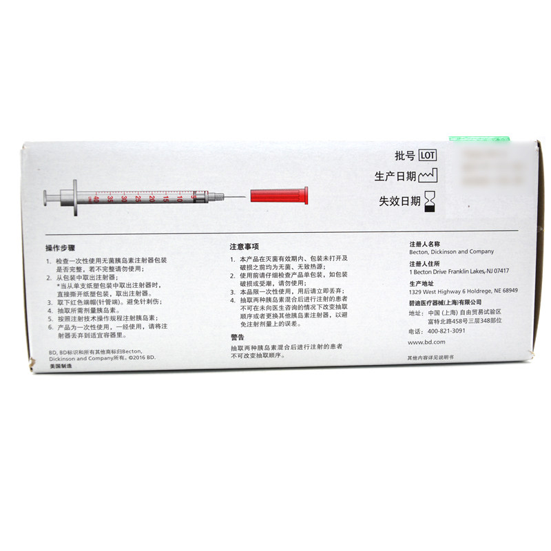 Шу Руи использует стерильный шприц инсулинового шприца (иглы BD) 1 мл в один раз