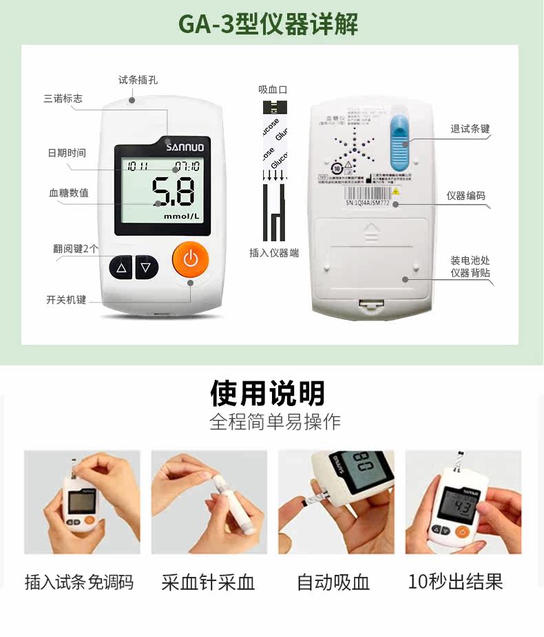 三诺 GA-3 Тест на глюкозу в крови бумага Домохозяйство.