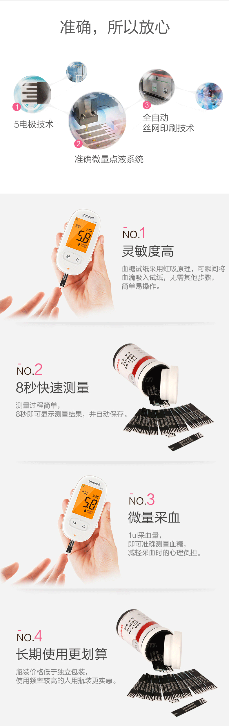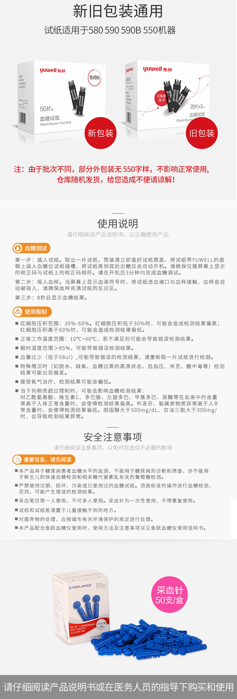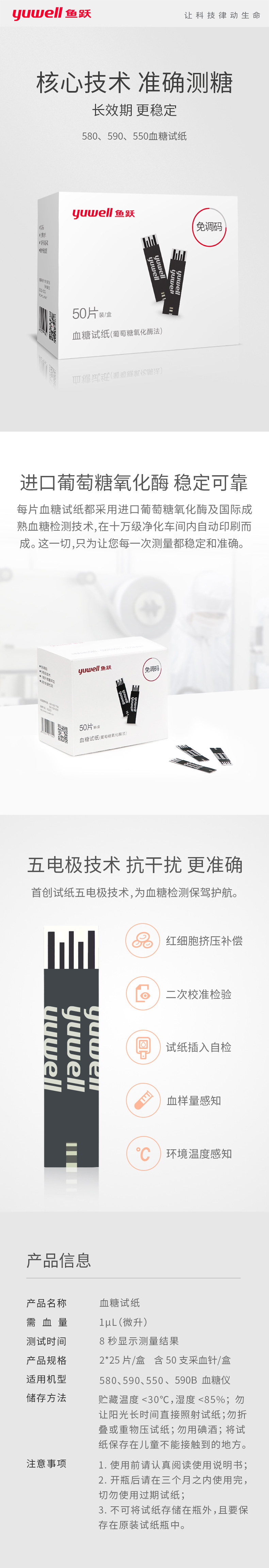 鱼跃 Тестная полоса глюкозы в крови 580 Fish Yueyue Brand Blood Glucose Tester 590b Тестовая бумага 10 таблетки 100 таблетки