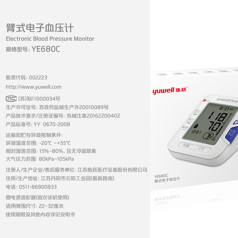 鱼跃 Электронный сфигмоманометр Дом ye680c Полностью автоматическое интеллектуальное измерение давления давления точное измеритель артериального давления