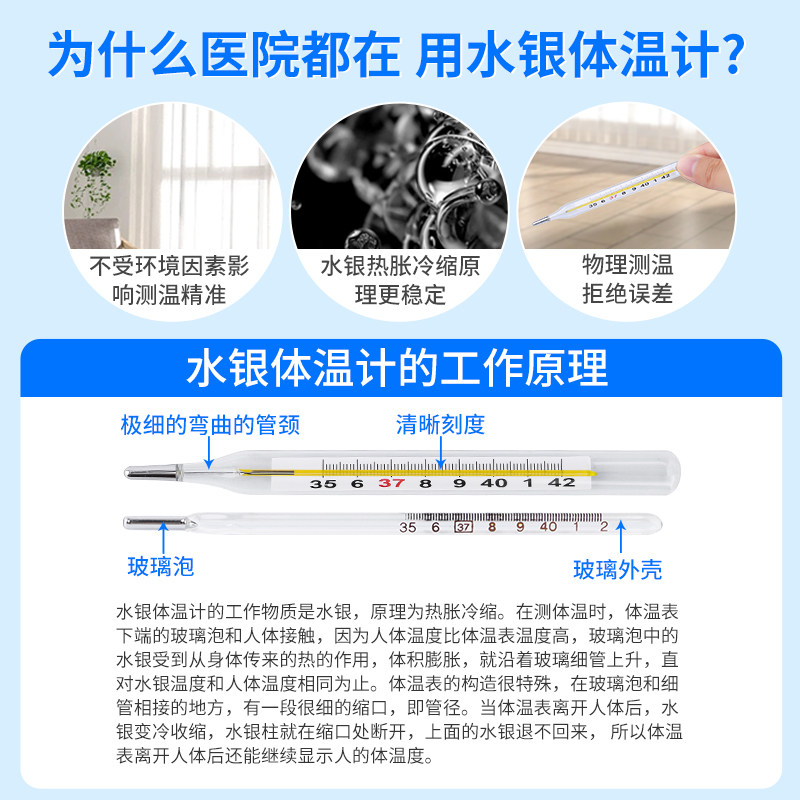 安其生 Высокоточный стеклянный оральный термометр для домашнего использования