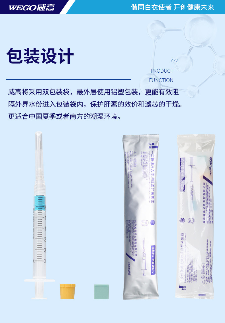 威高 Jierui одноразовая артериальная кровь -образец артерий для человека Collector Медицинская стерильная кровяная газовая сборы крови
