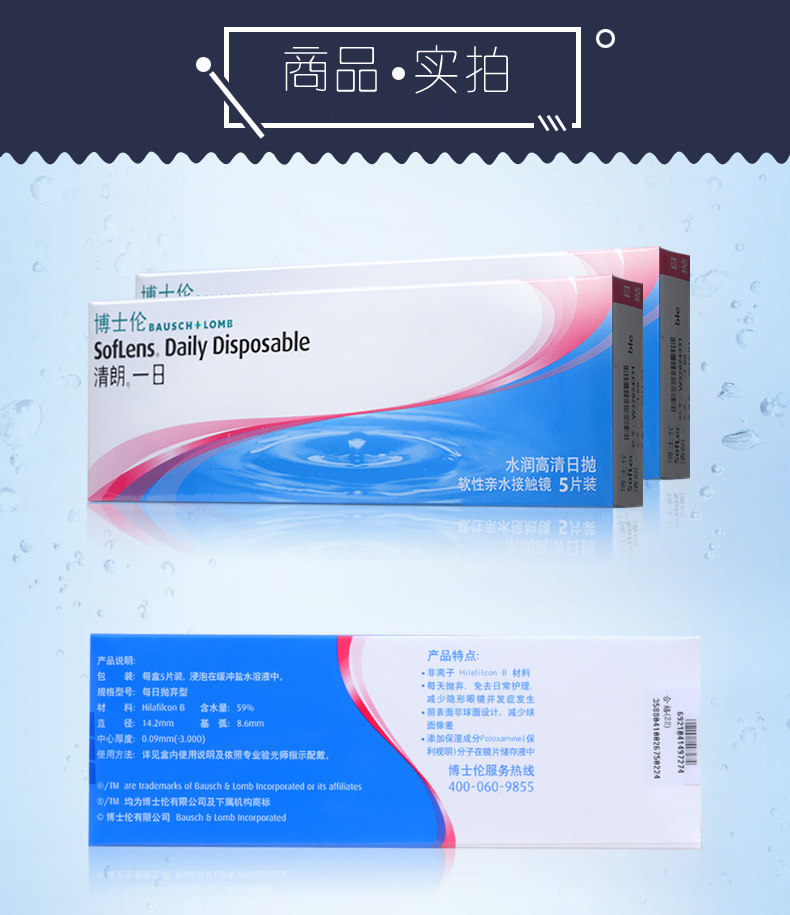 博士伦 Невидимые одноразовые прозрачные очки, 5 штук