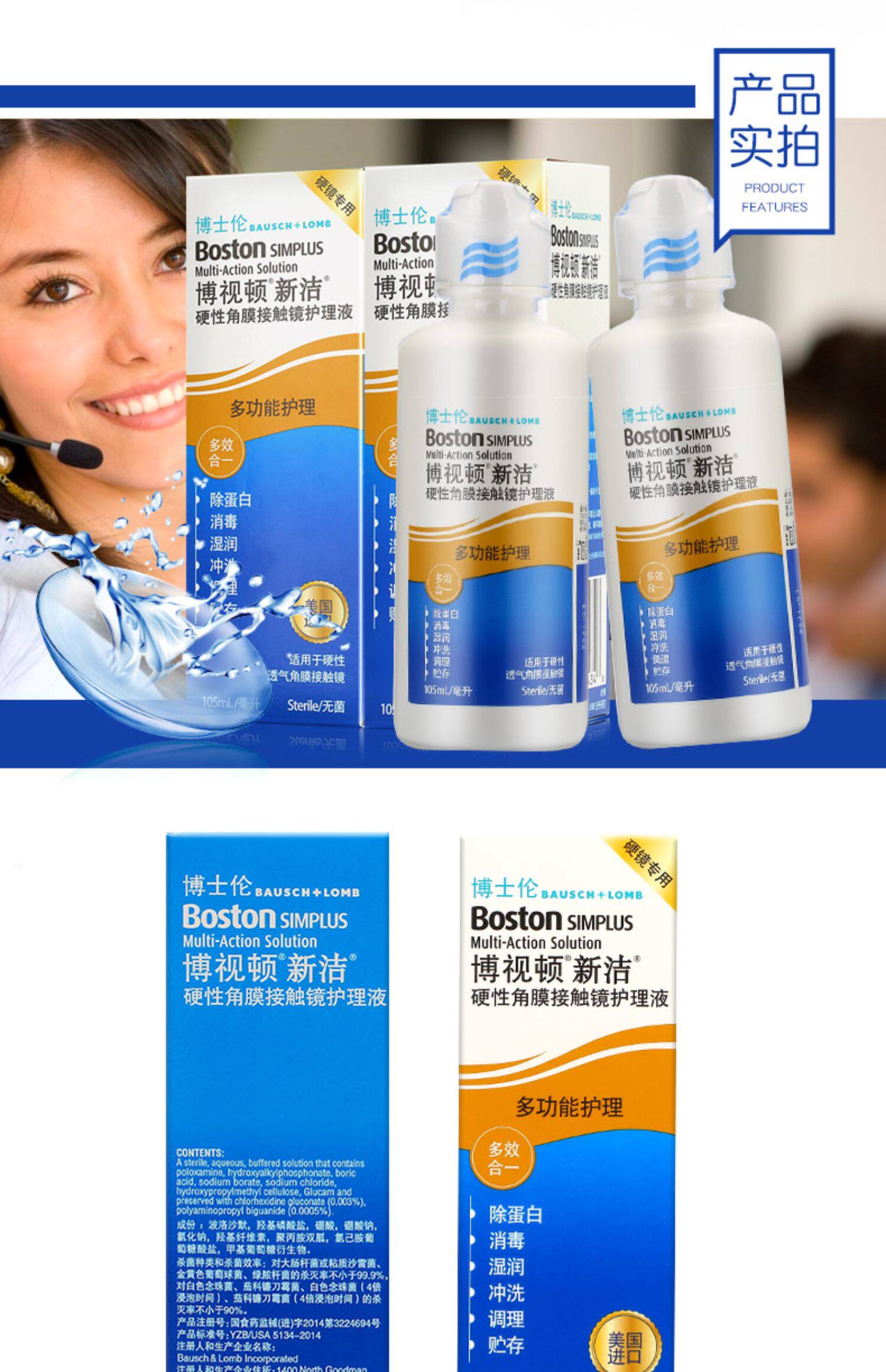 博士伦 Bosteton xinjie care 105ml*3 жесткий пластик роговицы