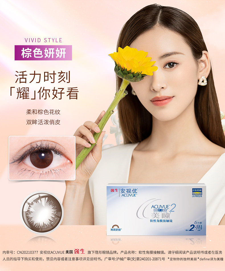 Johnson & Johnson проверили двойные еженедельные 6 кусочков красивых учеников маленький диаметр Стелс -миопия очки коричневые подлинные