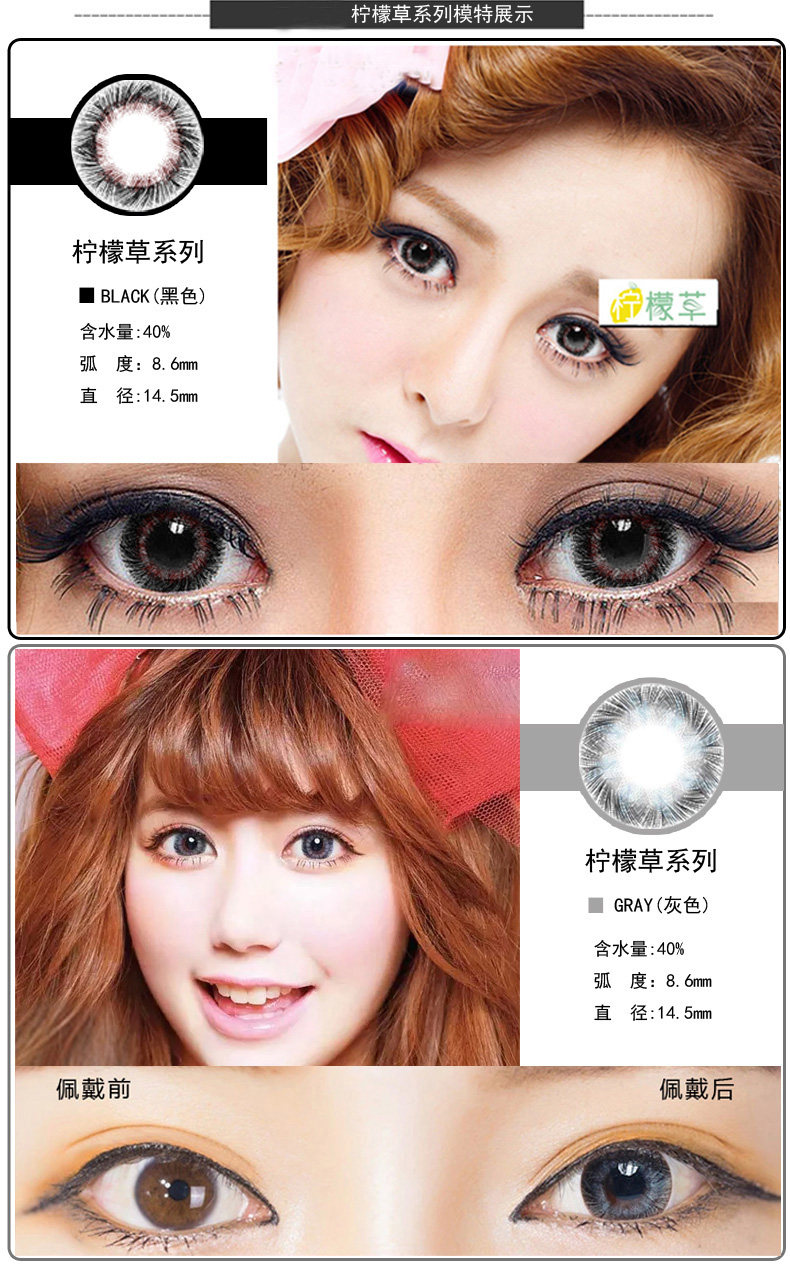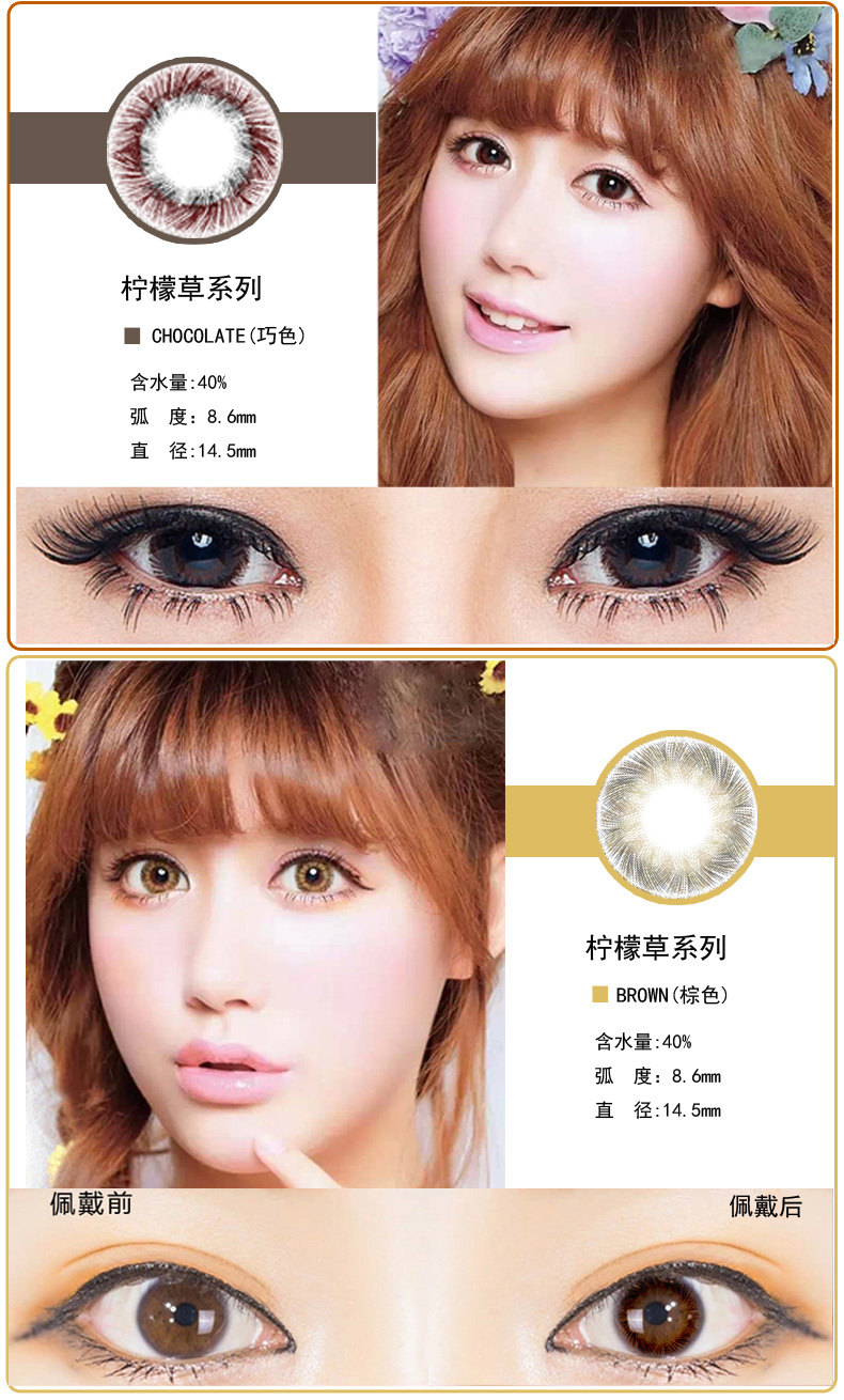 2 куска красивого зрачка молочная богиня XI Yan Lemon Series Черно -серая коричневая синяя фиолетовая миопия контактные линзы MD