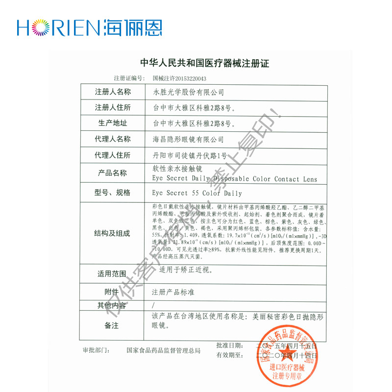 Hai Lif Natural Beautiful Beautiful Supil Day Day Poor 5 Shirning GZ невидимые очки миопий