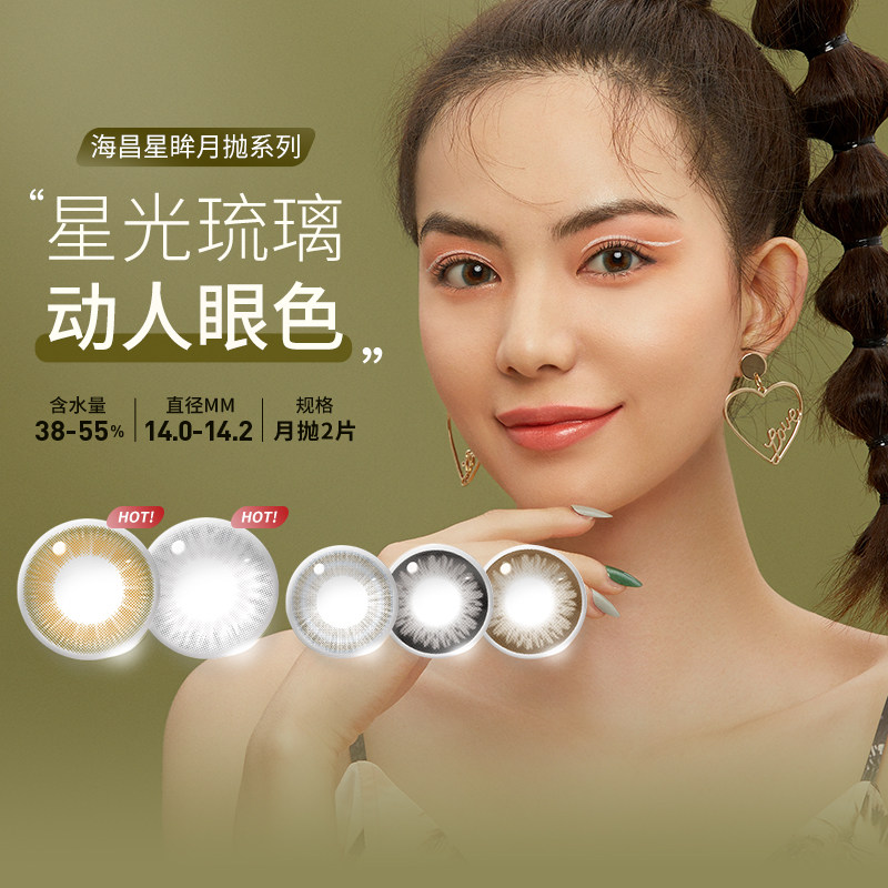 海昌 Звездные глаза красивые зрачки Луна брось 2 Диспозирование диаметром цвет цвет невидимых очков миопии натуральная сеть красная подлинная LS