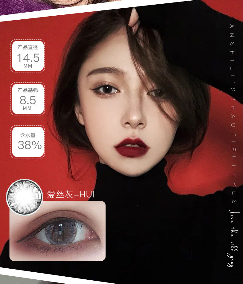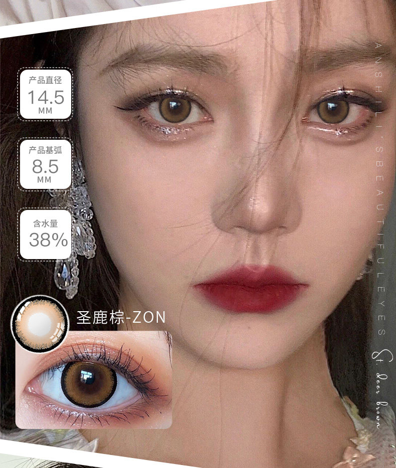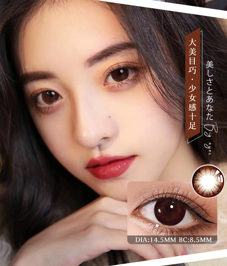 Звезда чисто серо -зеленый и красивый ученик -год, бросающий женщин, знаменитости в диаметре размера, та же самая игра с большими глазами Melain Beauty Brown Natural Tn