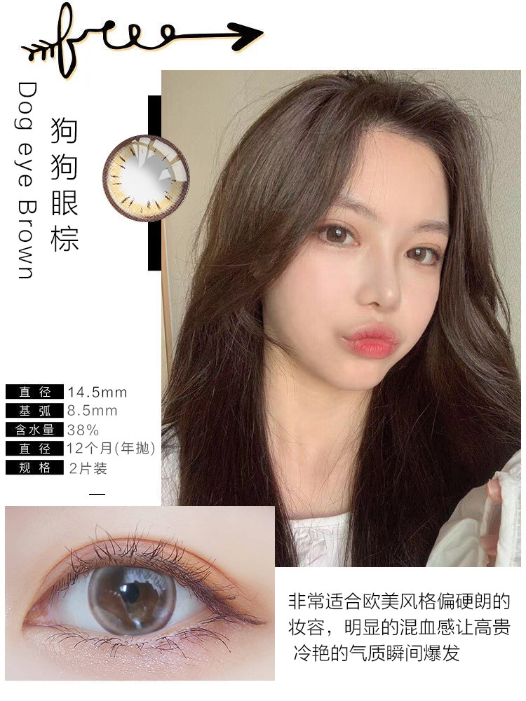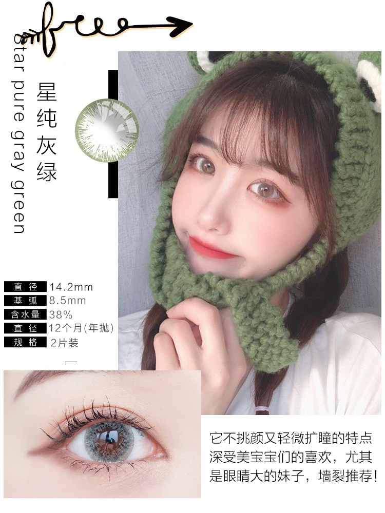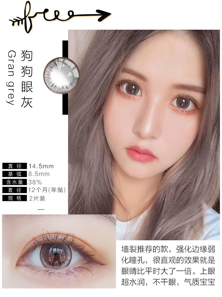 Mei Tongnian бросает женские большие диаметры контактные линзы миопия очки собачья глаз серый полугодичный бросок подлинного официального сайта громкое название Qz