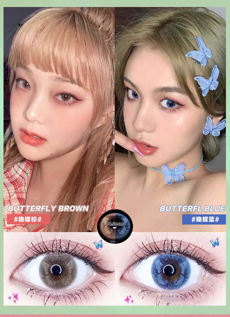 Синие невидимые очки, диаметр 14.0мм, кошачий глаз