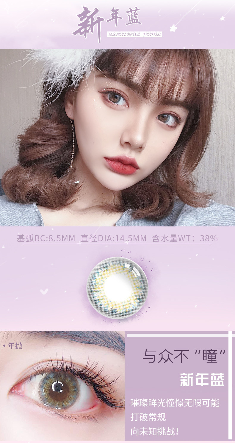 Купить один Получите пару соуса Purple Blue Beauty Beauty Sublic Mixed -Race Contact Lines Размер в диаметре европейские и американские сети красные в тот же год.