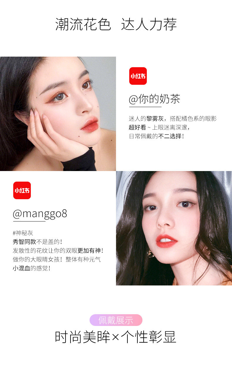 润瞳 2021 Новый продукт красивый зрачок смешанный женский женский полу -лежащий больший контактный размер