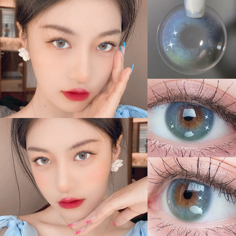 Peachcon Comic Silver Moon Blue Beauty Bupil Year, бросающий диаметр размера женщин, диаметр, ежемесячный грубый синий края смешанные очки увлажняют их