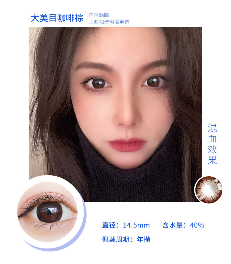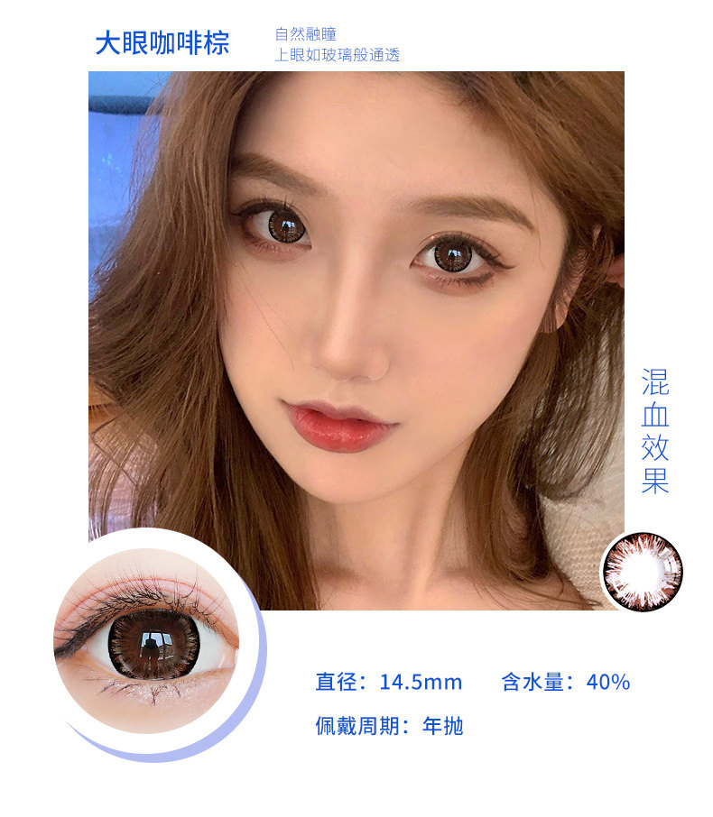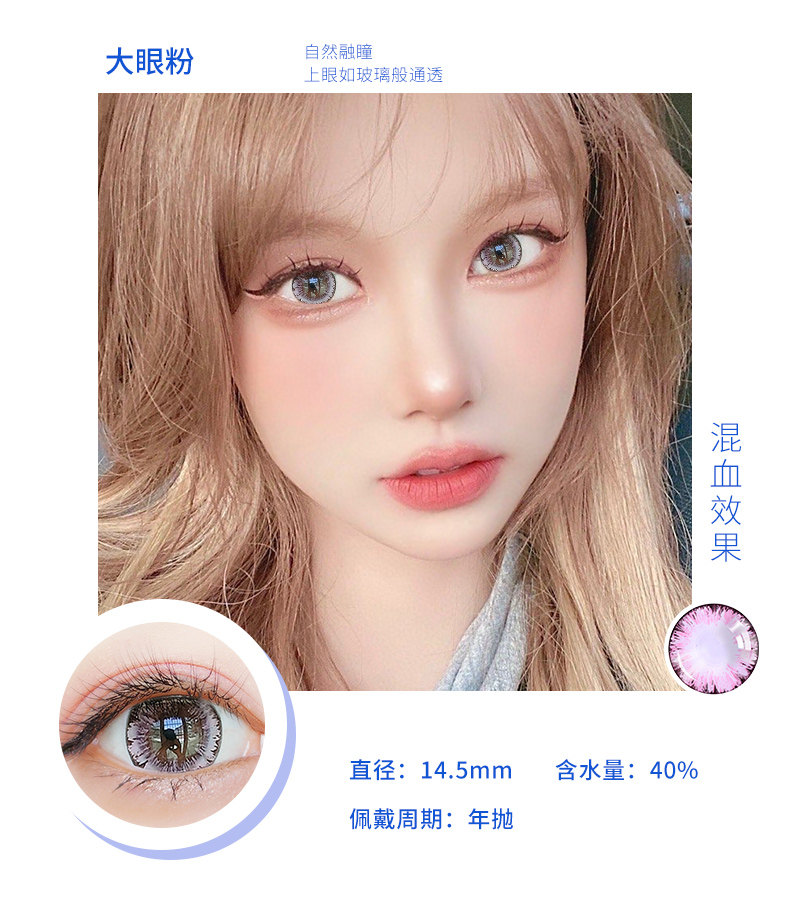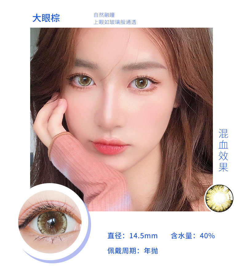 Houhou Big -Eyeed Girl Beauty Beauty Supil Big Diameter 14,8 года бросает европейский и американский смешанный QL Cloid Contact Lins Box половина года бросает День броски