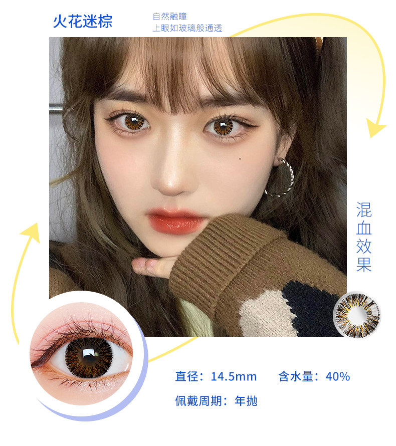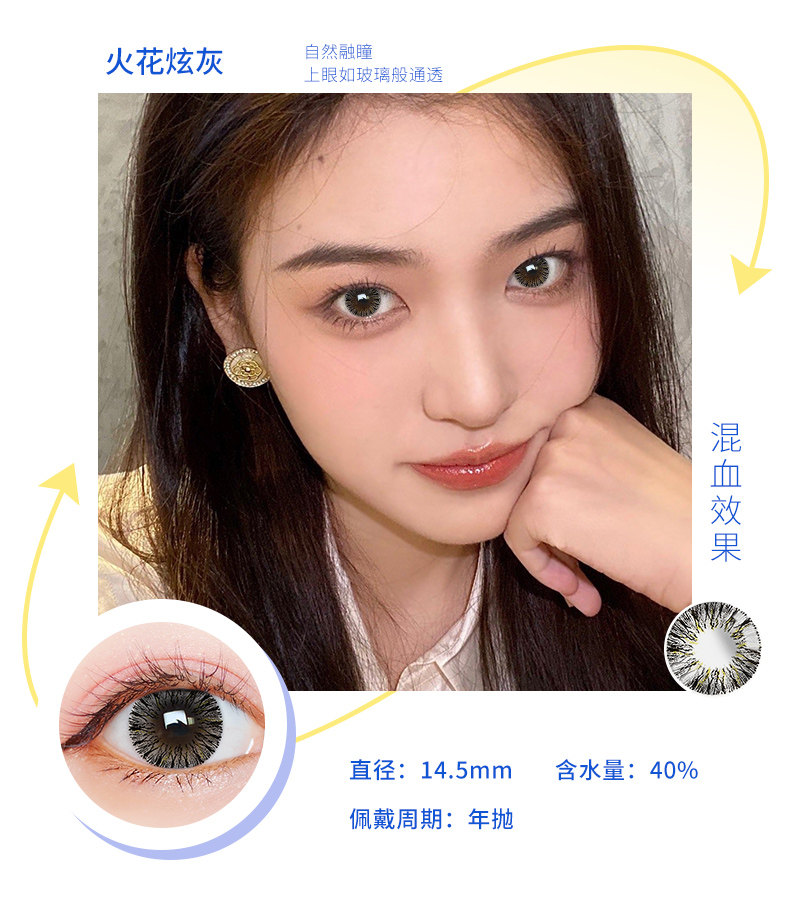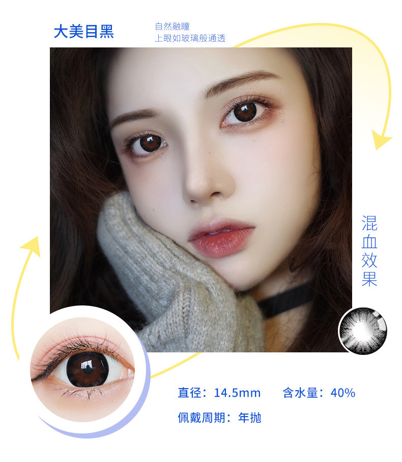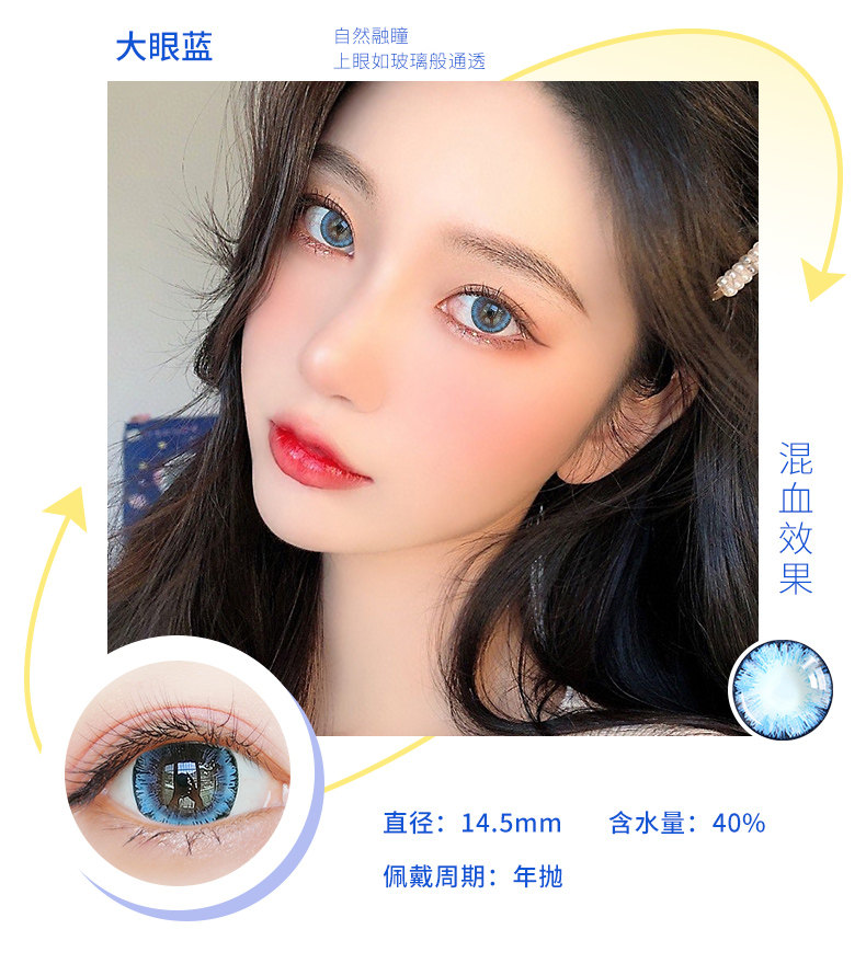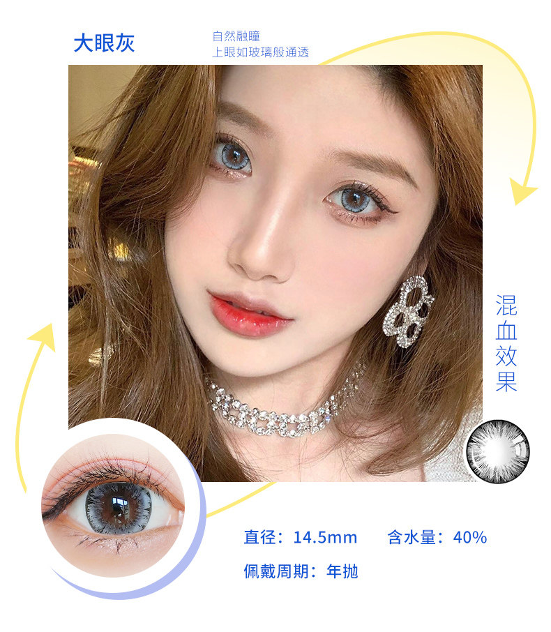 Houhou Big -Eyeed Girl Beauty Beauty Supil Big Diameter 14,8 года бросает европейский и американский смешанный QL Cloid Contact Lins Box половина года бросает День броски