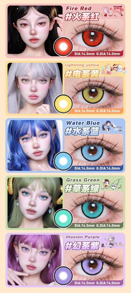 Купидон Люцифер Красное пламя Гора Красный Чиба Красный Желтый Экстремальный день Вода Синий Зеленый Дыня Бог Зеленый цвет Контактные линзы Ежегодные одноразовые TF1