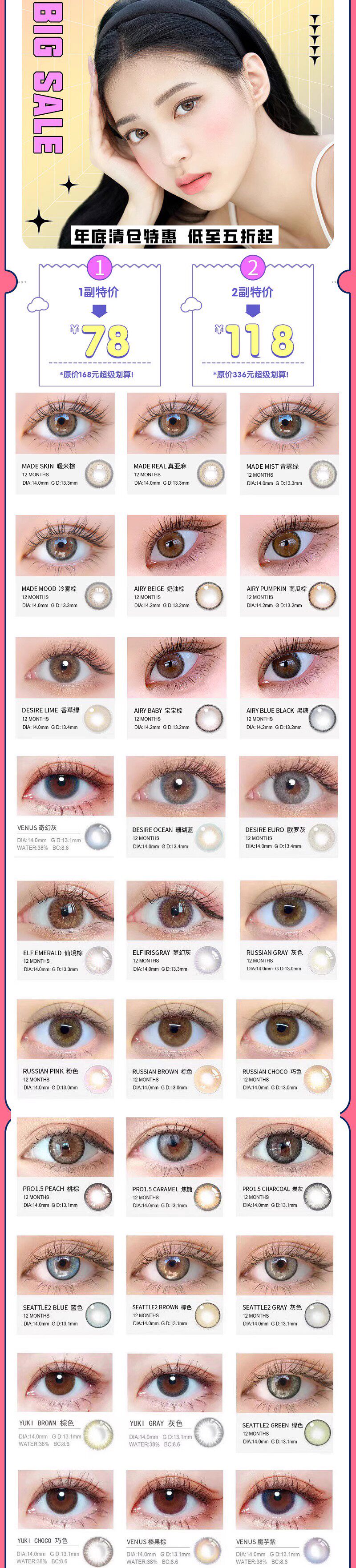 Корейская идольпро карамель коричневый розе медово -коричневый натуральный смешанный и красивый зрачок европейский и американский смешанный диаметр.