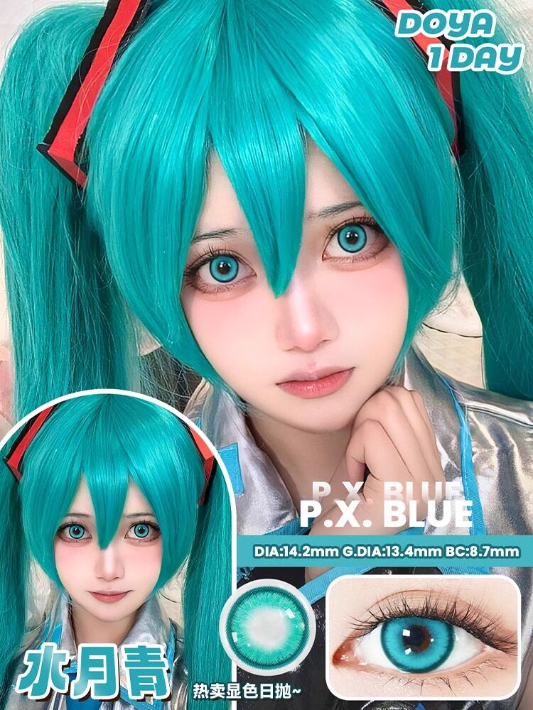 Контактные линзы Doya, потому что Hatsune Miku, ежедневные одноразовые, бирюзовые, голубые, вода, луна, зеленые, бог ветра, качели, dgugulens, небесно-голубые