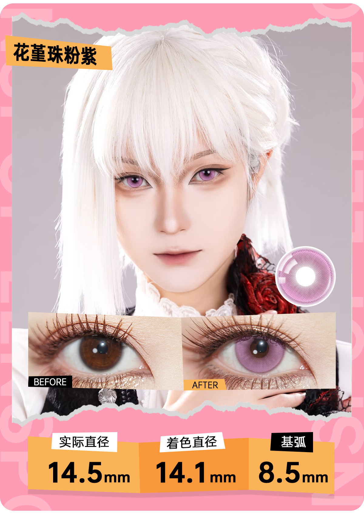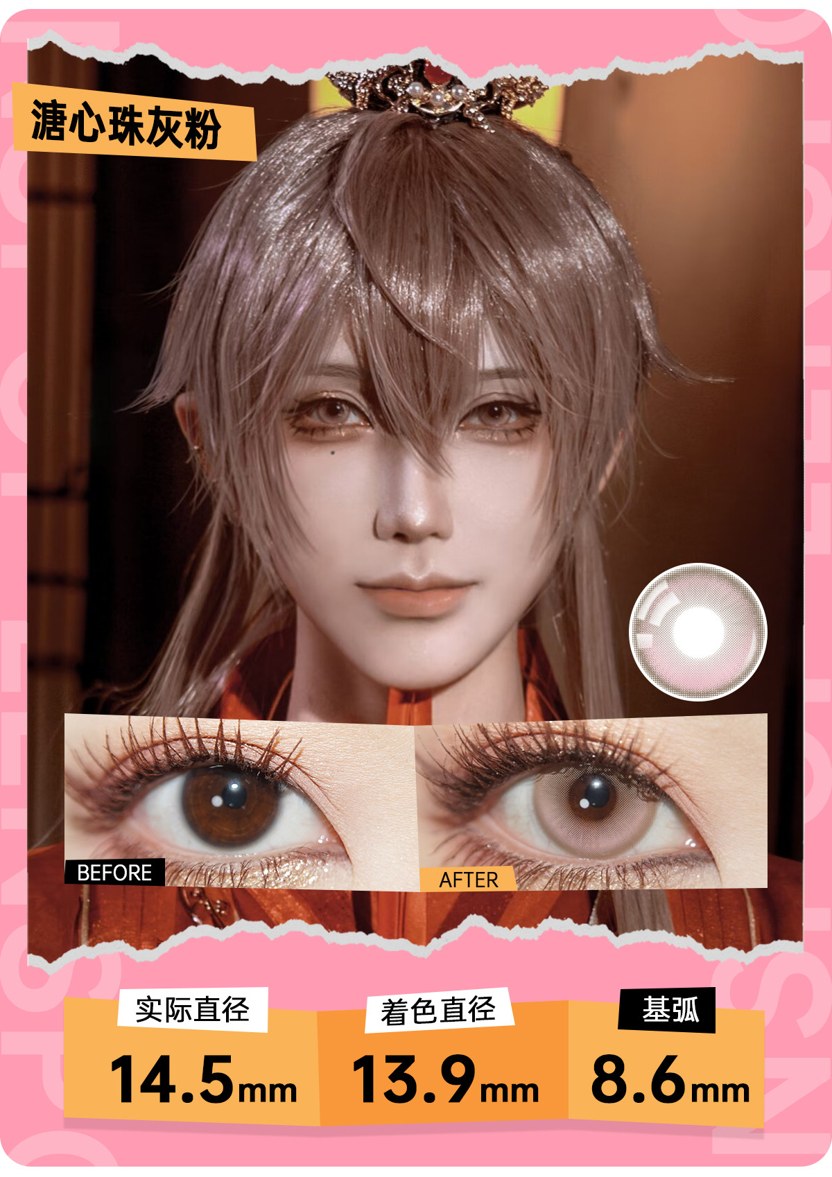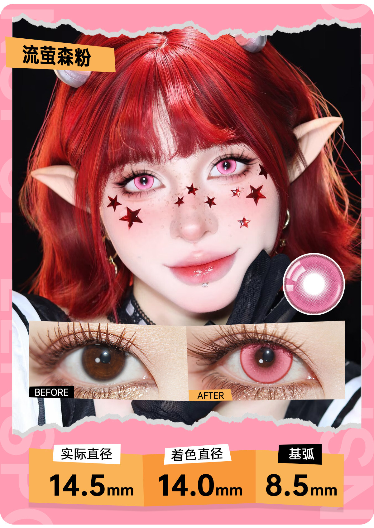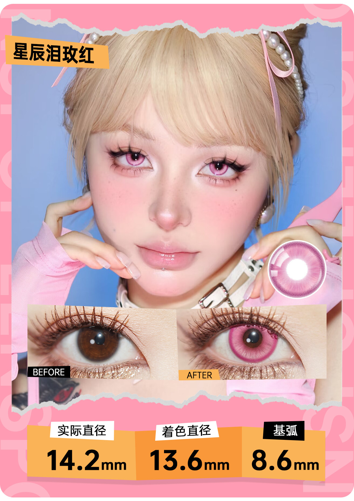 LENSPOP Hitomi Story розовые цветные контактные линзы, коллекция ежедневных одноразовых Kafka, тысячекратные леопардовые глаза красного оленя, круглые Li Tianxi