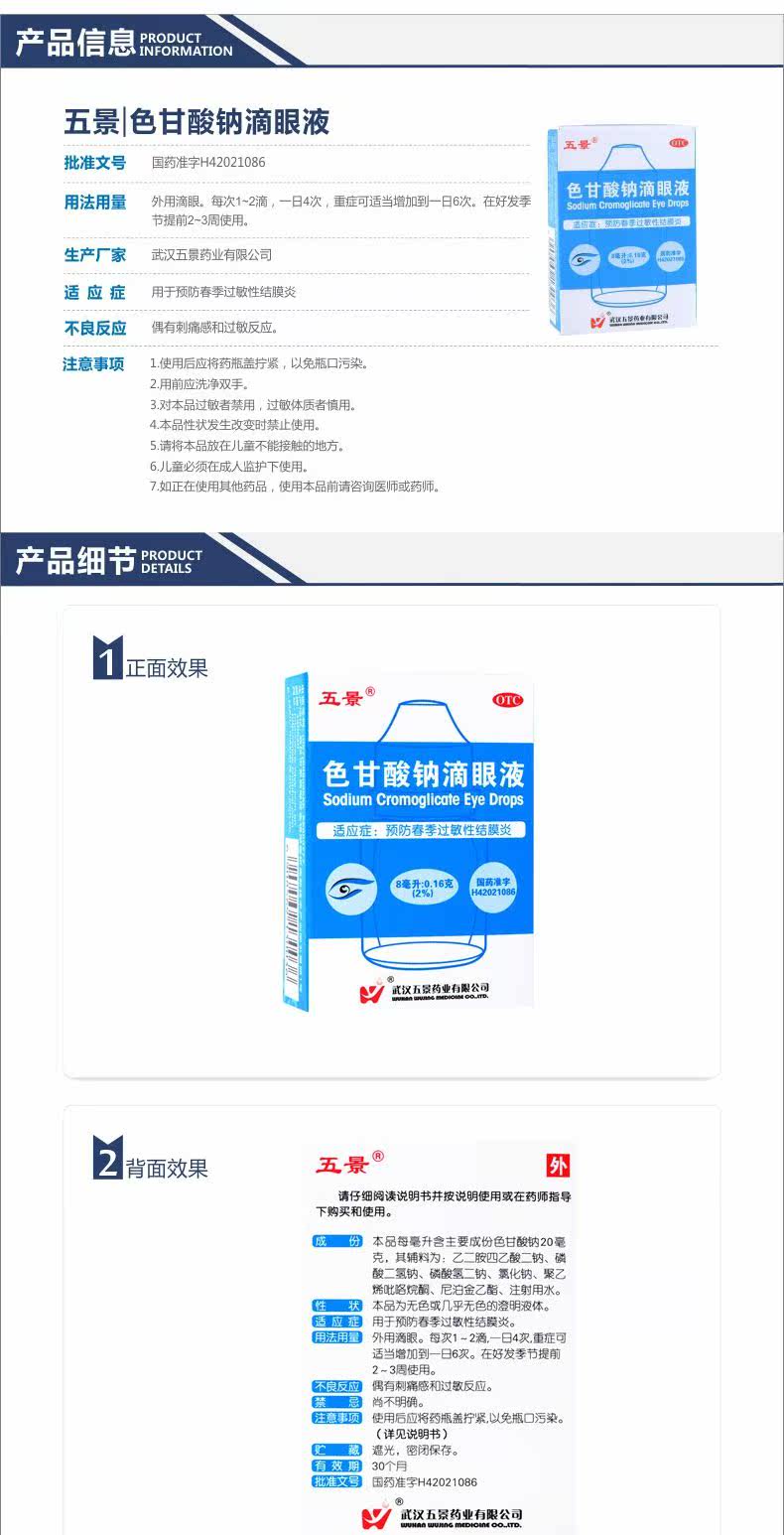 БЕСПЛАТНАЯ ДОСТАВКА] Пять -просмотр глазных капель с гликопийными кислотами натрия 8 мл*1 бутылка/коробка для предотвращения пружинного аллергического конъюнктивита глазные капли глазных капель