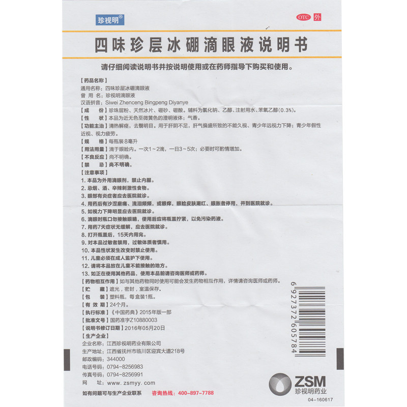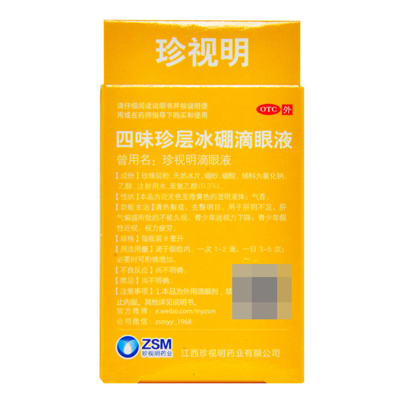珍视明 Siwei Zhen Layer Ледяной бор глазные капли 8 мл зрения усталость псевдо-миопия очищающая тепло и глазные капли