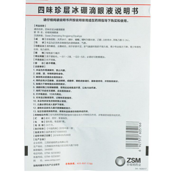 珍视明 Siwei Zhen Layer Lead Boron Eye Dops 13 мл поддельные миопии и снижение глазных капель с усталостью