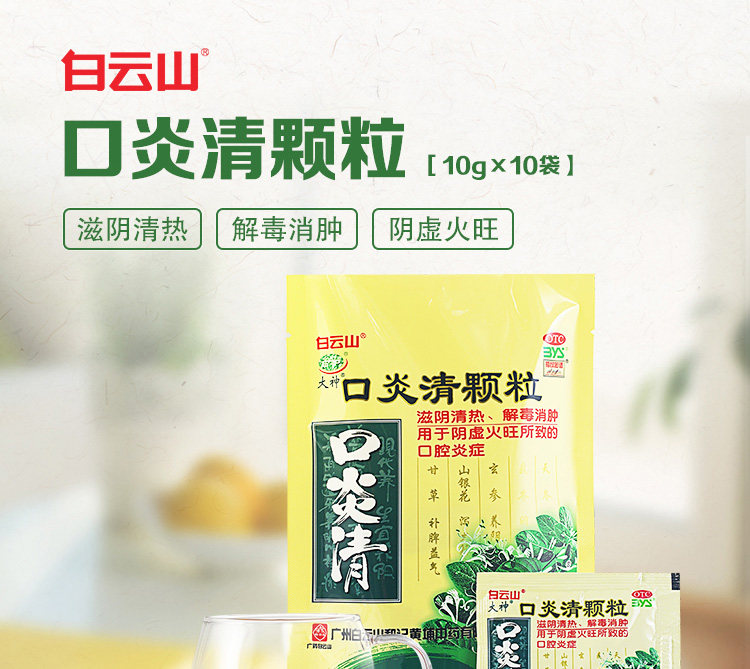 白云山 Воспаленные частицы рта 10 пакетов питательной инь, чистое тепло, детоксикация, отек, воспалительная язва рта