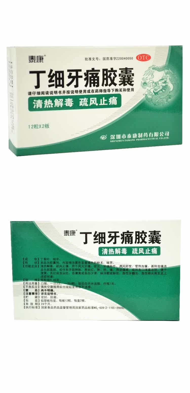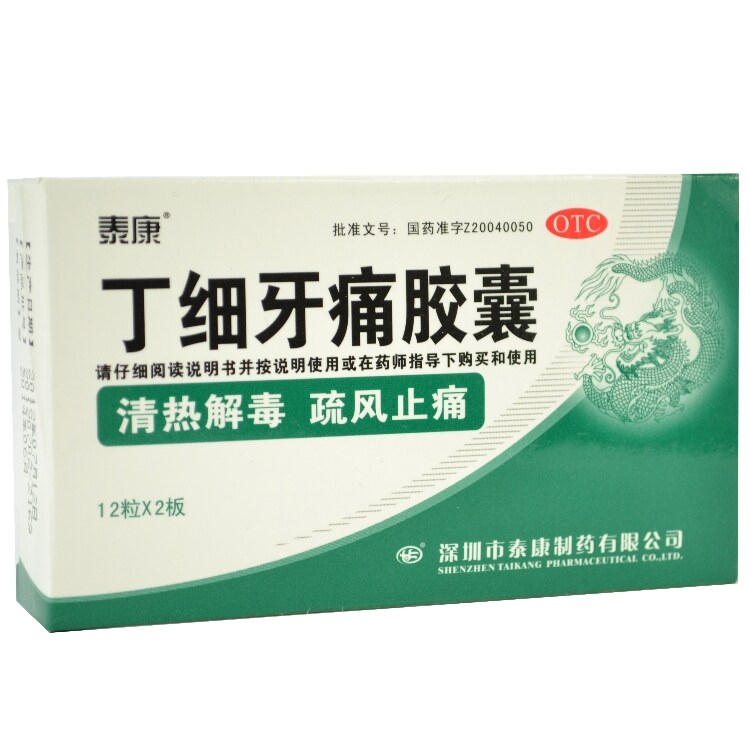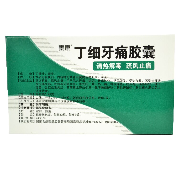泰康 Капсулы зубной боли Ding xixi 0,45 г*24 капсулы очищают тепло и детоксифицирование, разреженное облегчение боли, зубная боль ветра