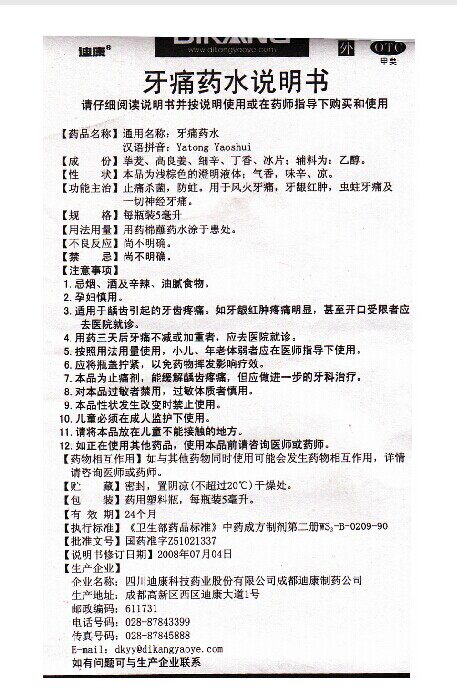 迪康 Зубная боль 5 мл*1 бутылка/коробка облегчение боли, стерилизация, противодействие огню и огонь, зубная боль, отек