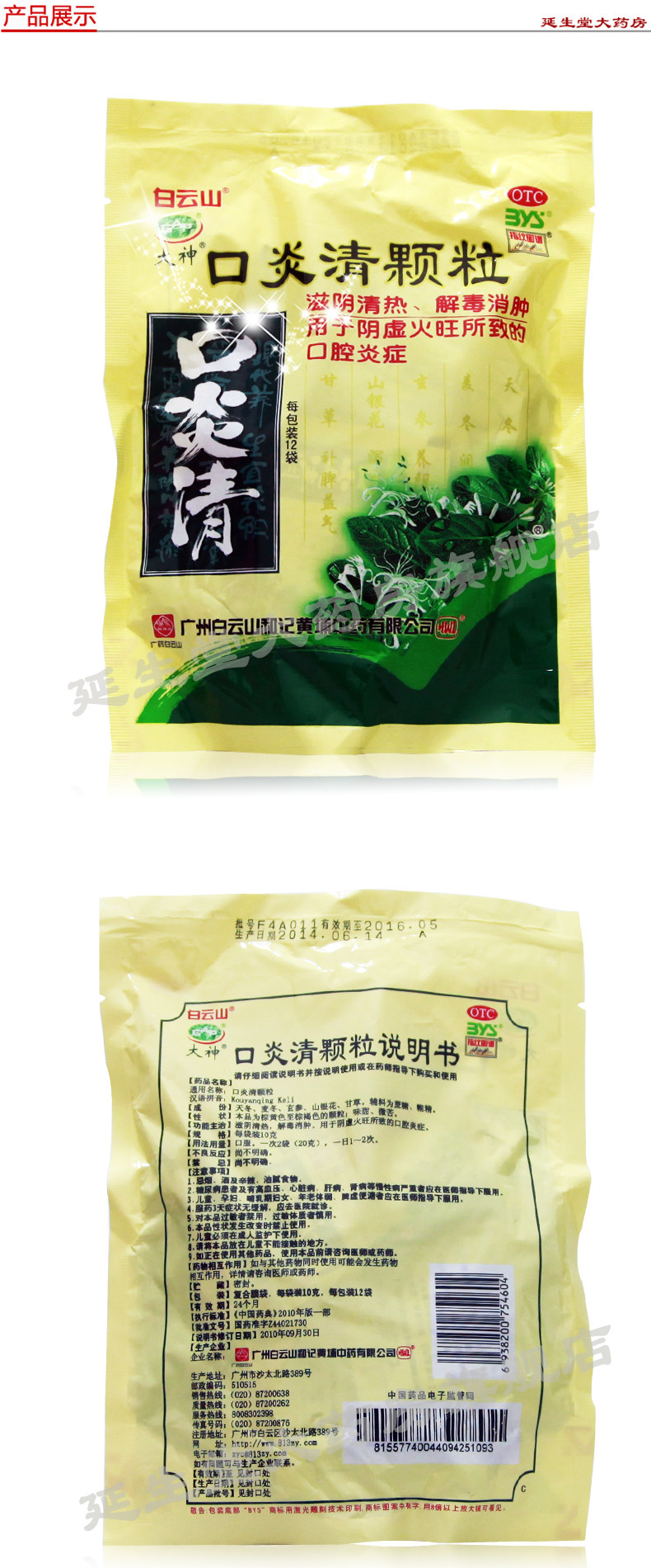 白云山 Воспаливание гранул 10 г*20 мешков с белыми облаками гора