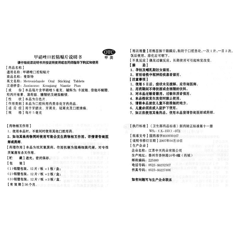 麦斯特 Метронидазольная пероральная паста 5 мг*12 таблеток