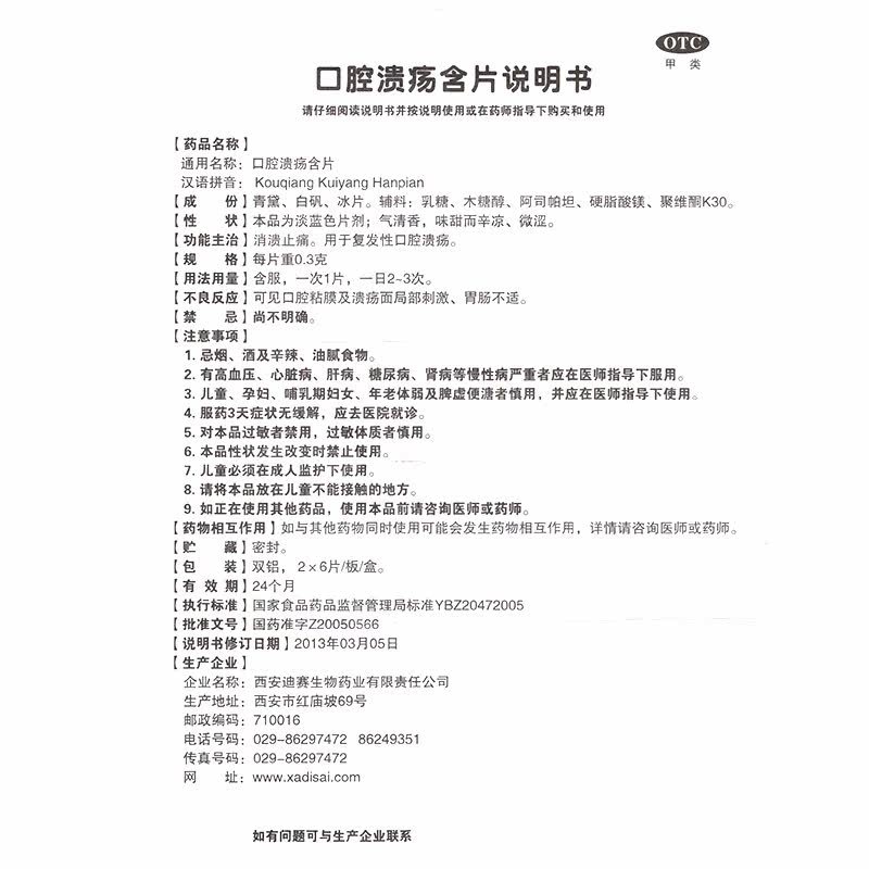 迪赛 Язва перорала содержит 0,3 г*12 таблеток/ящик против of -Collapse и анальгетик для рецидивирующих пероральных язв
