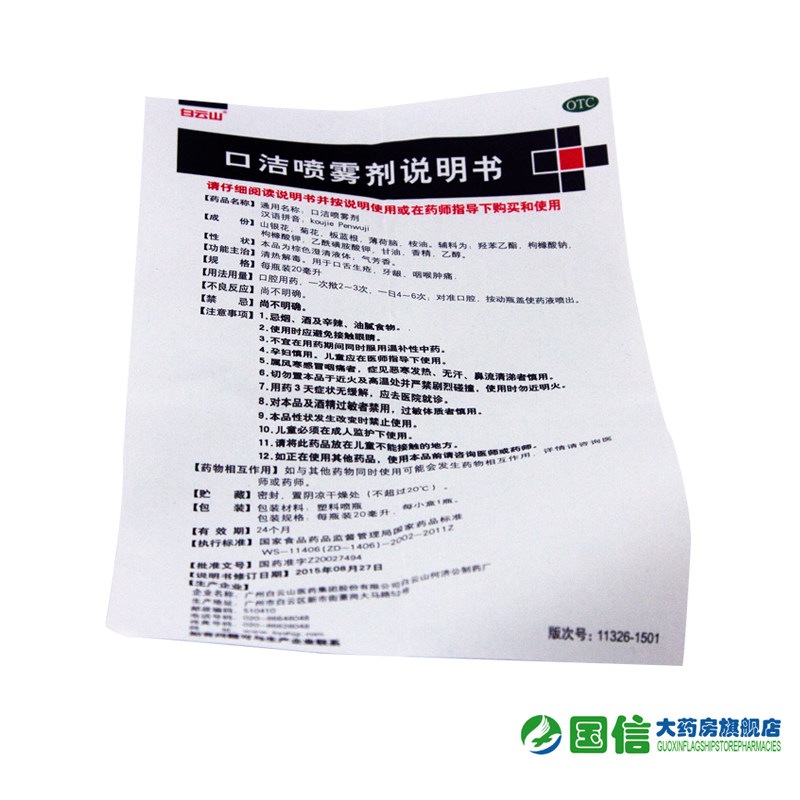 Не надевайте очищающий спрей Baiyunshankou 20 мл*1GX