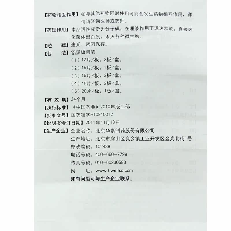 华素片 Западный йод содержит 15 таблеток для хронического фарингита Паротоонтит.