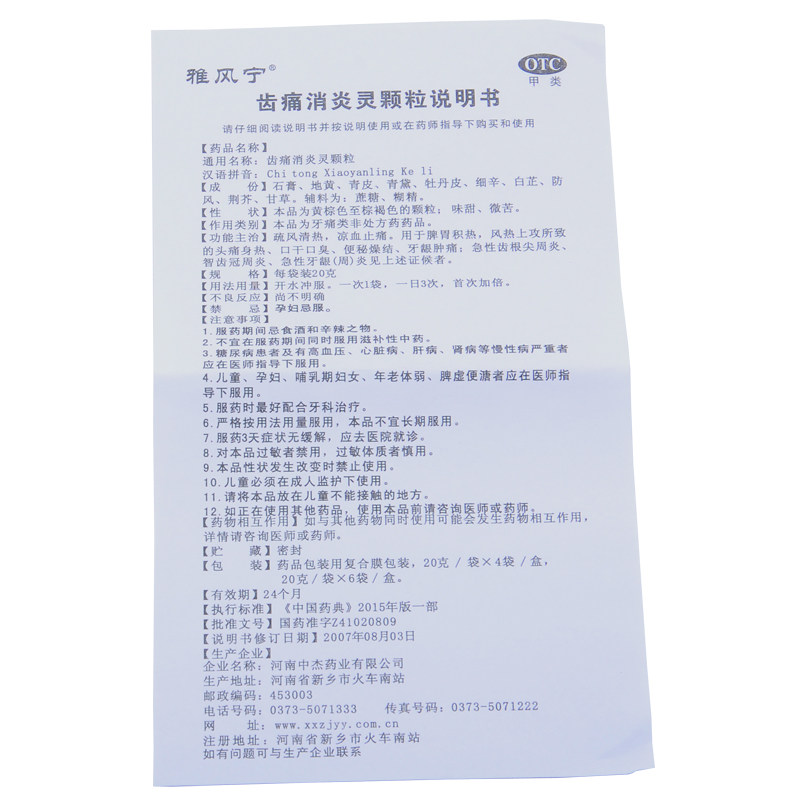 雅风宁 Зубная боль Внедламентальные частицы 20 г*4 мешка зубного зуба периодонтит пухлуки.