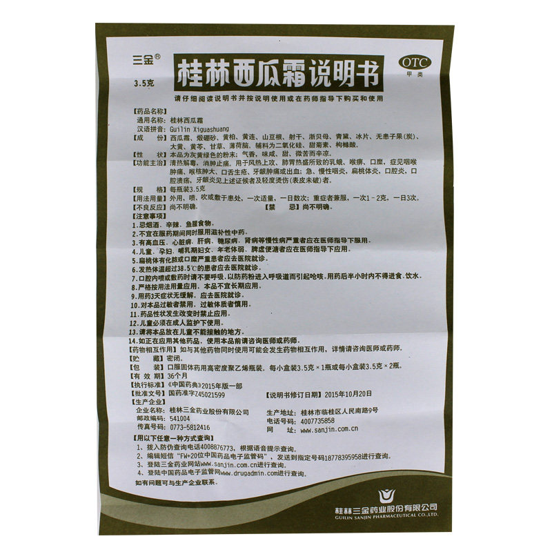 Бесплатная доставка] Санджин Гийлин арбуз крем 3,5 г боли в горле и обезболивающее облегчение Острый хронический фарингит пероральный язвенная спрей препарат
