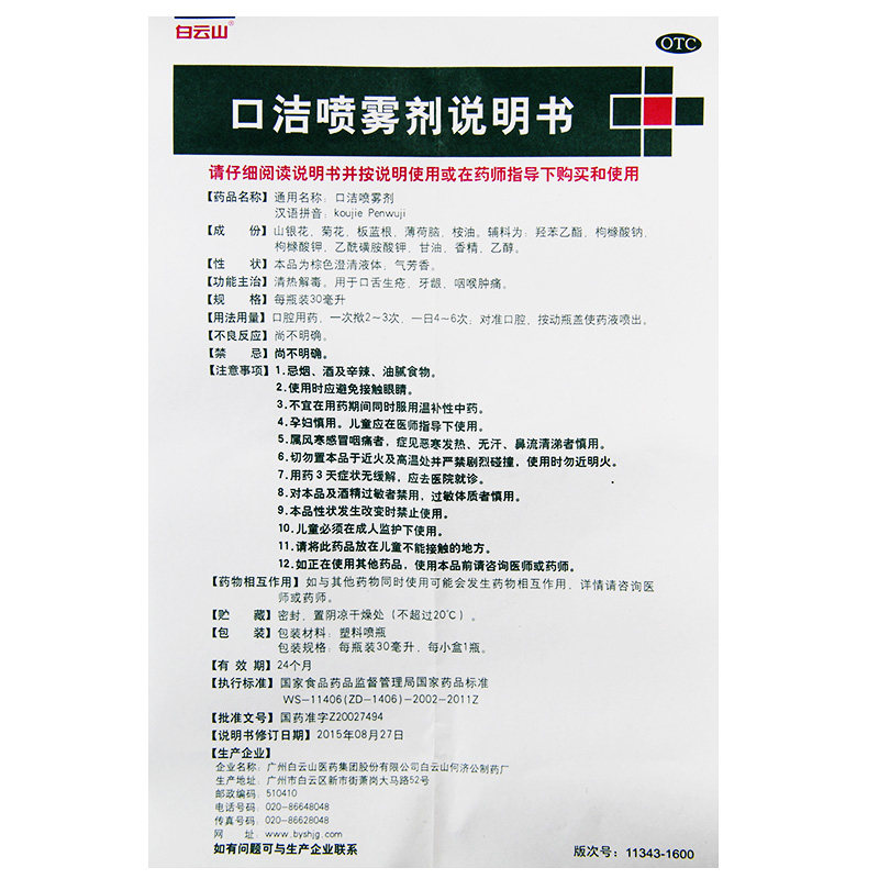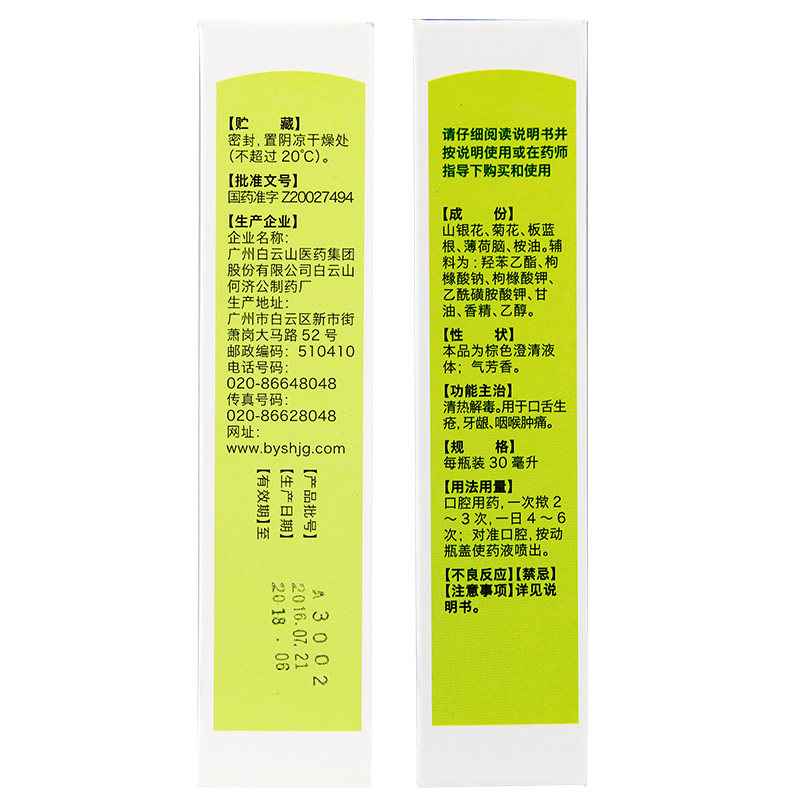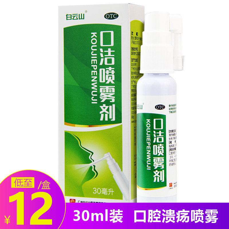 白云山 Пероральный чистящий спрей -агент 30 мл горла и боль, зубная боль, зубная боль, зубная боль, пероральная язва лекарства