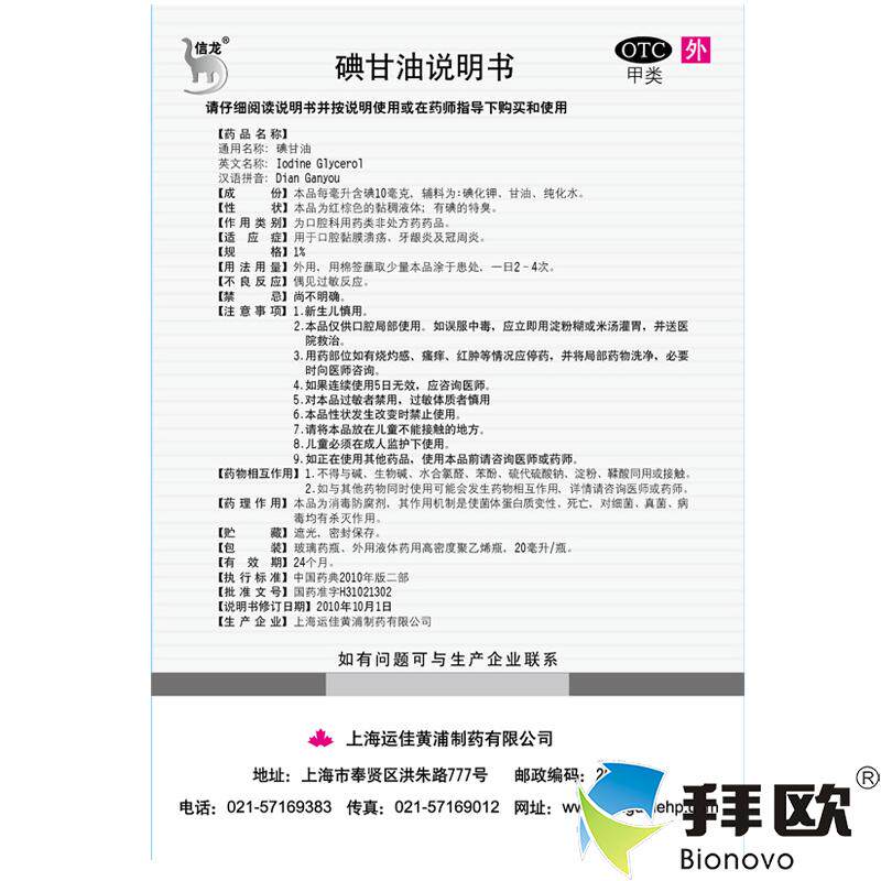 信龙 Йод глицерин 20 мл слизистой оболочки полоса рта язвы гингивит гингит пересекающийся фармацевтический магазин Официальный флагман